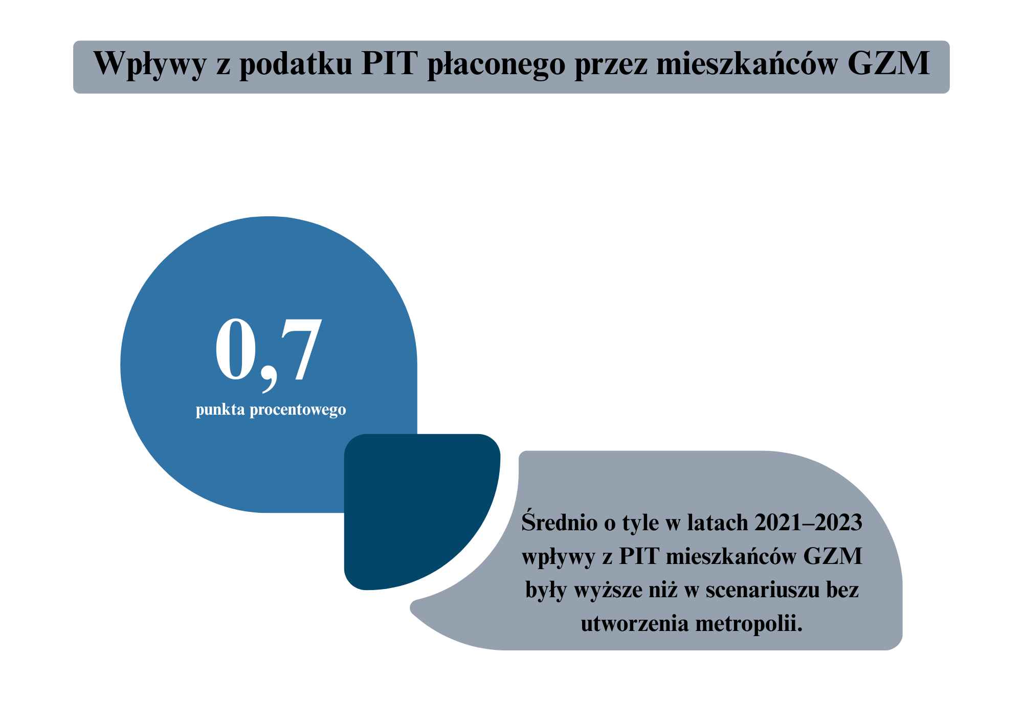 Analiza ekonomiczna wykazała też, że szybszy wzrost PKB przełożył się bezpośrednio na finanse publiczne. Wpływy z podatku PIT od mieszkańców GZM były w latach 2021–2023 średnio o 0,7 punktu procentowego wyższe niż w scenariuszu, w którym ustawa o GZM nie zostałaby przyjęta.