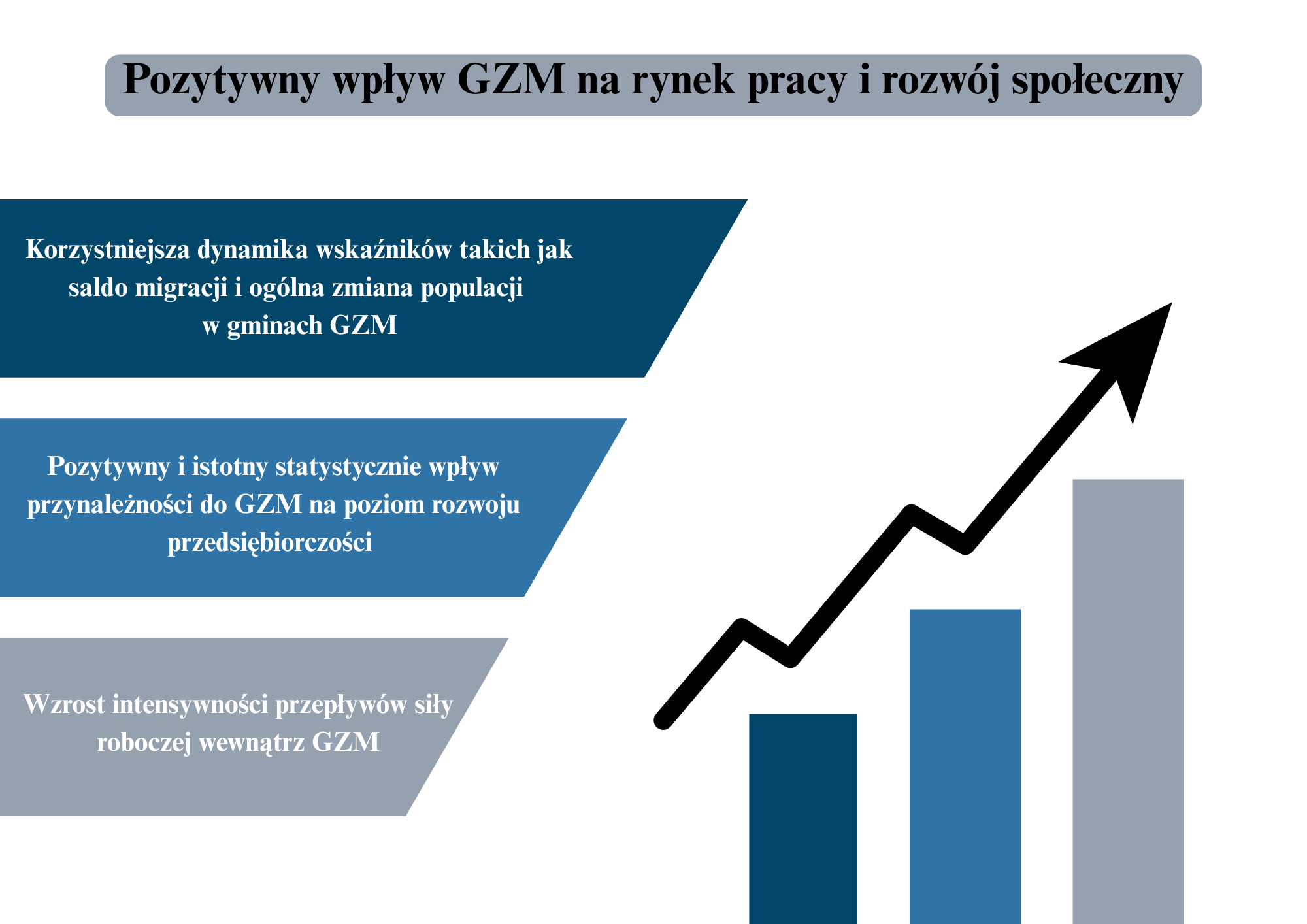 Badacze odnotowali też, że w najsłabszych gospodarczo obszarach GZM można wręcz mówić o braku dodatkowego impulsu rozwojowego, a nawet o pewnym efekcie ujemnym. Instytucjonalizacja metropolii może więc prowadzić do pogłębienia zróżnicowań wewnętrznych. Badacze sugerują więc by już na etapie projektowania ram prawnych dla kolejnych metropolii, w tym Metropolii Pomorskiej, przewidzieć instrumenty wyrównawcze (mechanizmy kompensacyjne), które zapewnią, że także słabsze gospodarczo gminy odniosą realne korzyści z powstania nowej instytucji.