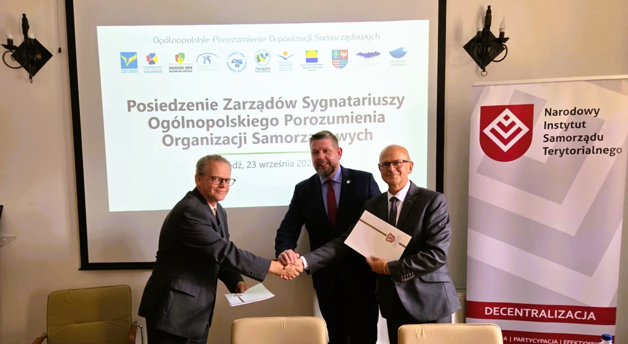 Pod przewodnictwem Stowarzyszenia Gmin i Powiatów Wielkopolski odbyło się posiedzenie Zarządów Sygnatariuszy Ogólnopolskiego Porozumienia Organizacji Samorządowych w siedzibie NIST w Łodzi. Pierwsza część spotkania została poświęcona podpisaniu porozumienia, co było poprzedzone prezentacjom instytucji i zaproponowaniu obszarów pogłębienia współpracy. Dyrektor NIST prof. Paweł Swianiewicz zaprezentował dorobek, aktualne działania Instytutu oraz plany organizacji na najbliższe miesiące. Przewodniczący SGiPW Jacek Gursz opowiedział o idei OPOS i fenomenie organizacji, trwających nie przerwanie od blisko 15 lat.